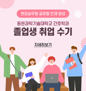 현장실무형 글로벌 인재 양성 Educating global talent for on-site Practice 정지 재생 Institute 교수소개 교과과정 입시Q&A 공지사항 공지사항 더보기 바로가기 학과행사 교육환경 2022년 간호학과 홍보영상 강의시간표 Photo Gallery 정지 재생